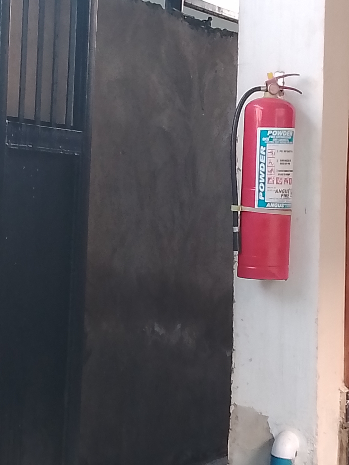 - "A red "ANGUS FIRE" brand, "POWDER" type fire extinguisher is securely mounted with a beige strap on a white-painted structural pillar" by FM-LjUv13, licensed under CC BY 4.0