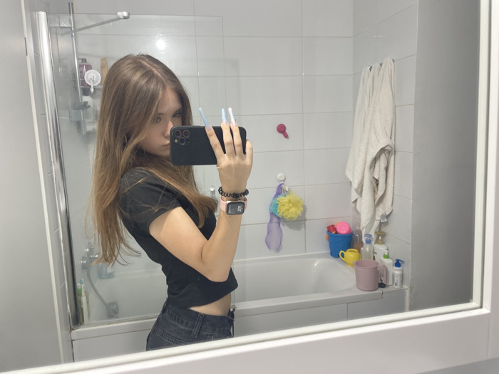 - "A young female is depicted in a mirror selfie within a bathroom setting, located in Raanana, Israel" by FM-VN4T93, licensed under CC BY 4.0