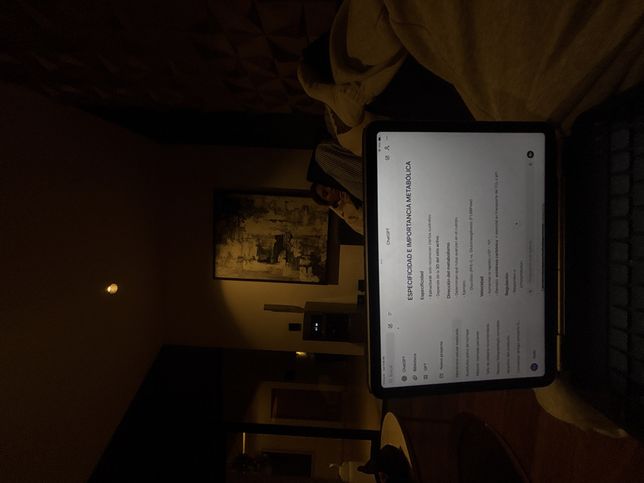 - "The image displays a digital tablet showcasing text in Spanish regarding specificity and metabolic importance" by FM-jdVku1, licensed under CC BY 4.0