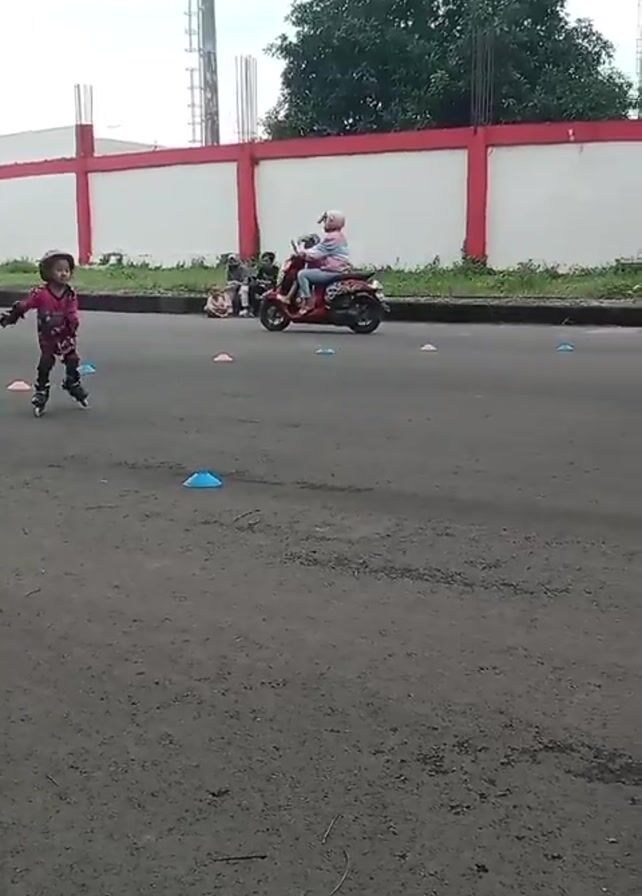 - "A young child wearing a pink helmet, roller skates, and a pink and black outfit is seen roller skating along a paved road" by FM-xHTx62, licensed under CC BY 4.0