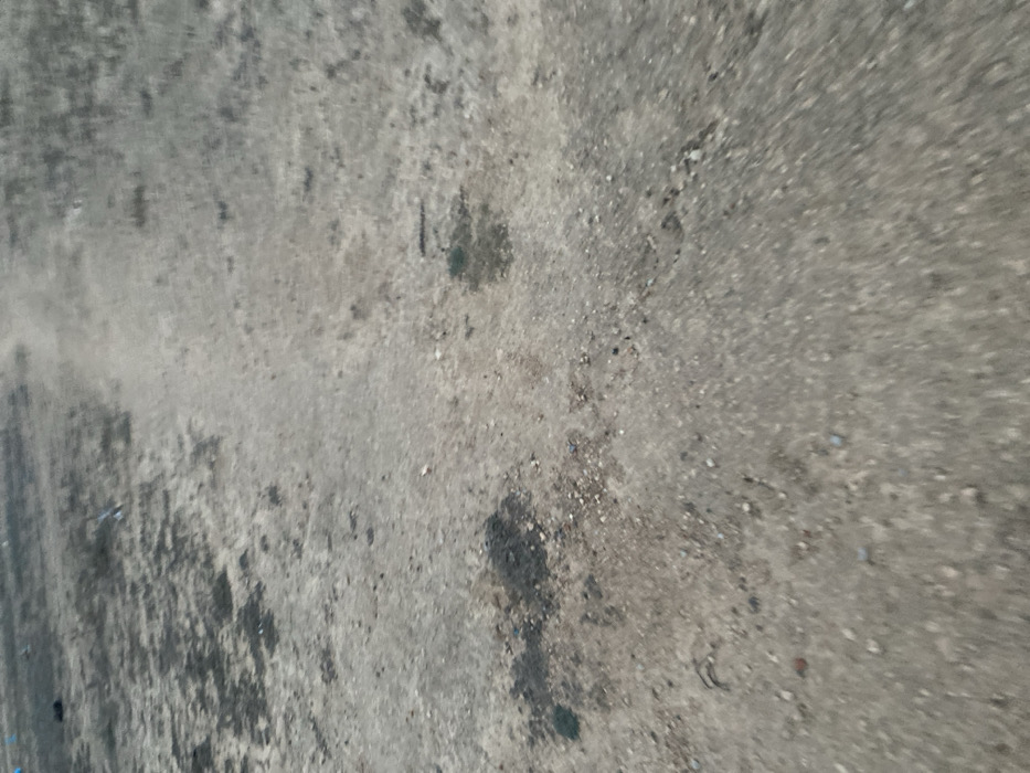 This image captures a ground-level view within الغنادة, Tunisia. The visible surface is primarily composed of light grey-brown compacted earth intermixed with small gravel and fine particulate matter. Irregular patches of darker, moisture-rich or densely vegetated soil, ranging from dark grey to muted greenish-brown, are present across the foreground and mid-ground. A subtle, well-worn pathway, approximately one to two meters in width, extends from the lower-right foreground towards the upper-center background. No human figures, vehicles, or specific man-made structures are discernible. The scene is illuminated by ambient light, resulting in minimal cast shadows.