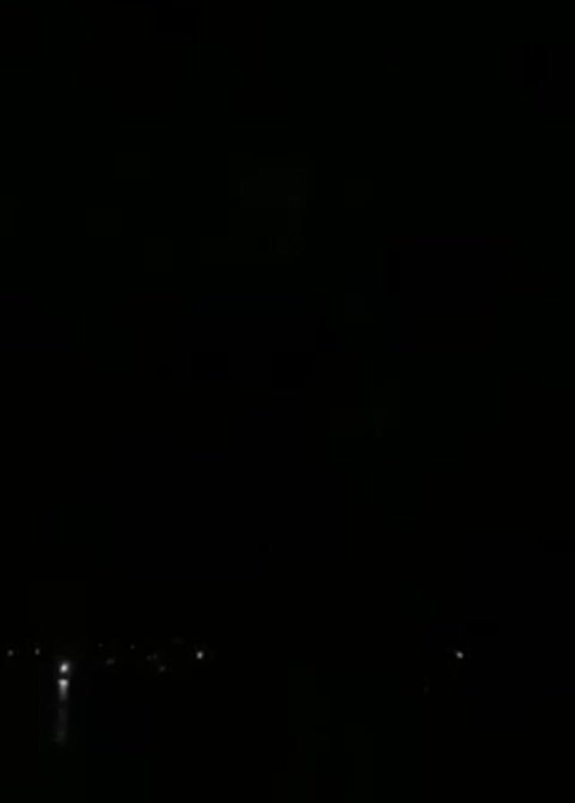 nighttime scene with sporadic flashes of lightning