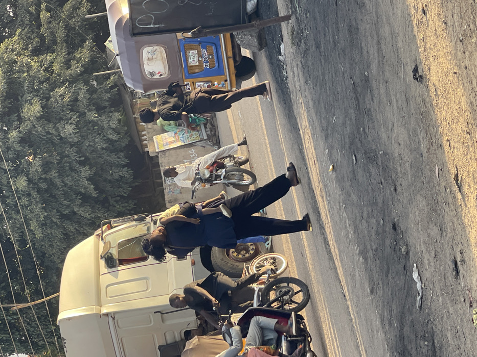 The image captures a roadside scene in Zaria, Nigeria, under bright daylight conditions with a golden hue, suggesting early morning or late afternoon