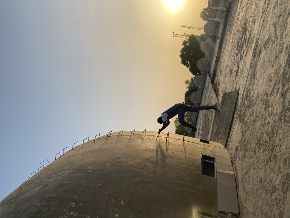- "This image depicts a man climbing an improvised ladder on the exterior of a large, light-colored, domed structure situated on a flat rooftop in Baganakwo, Nigeria" by FM-UMff02, licensed under CC BY 4.0