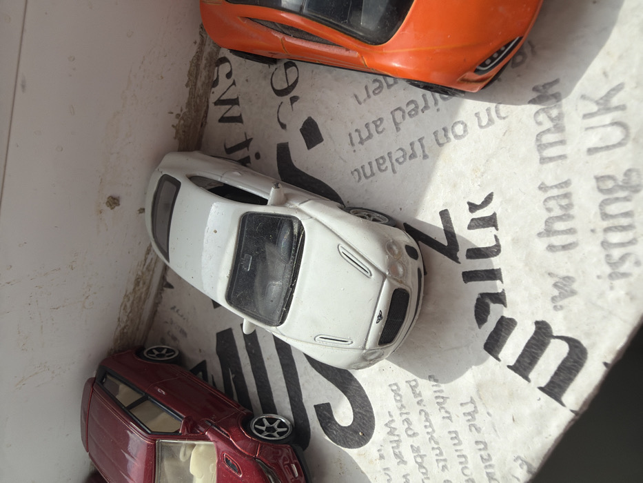 - "The scene, located in Kermen, Bulgaria, features three miniature toy vehicles resting on a patterned, off-white surface" by FM-7wZKu2, licensed under CC BY 4.0