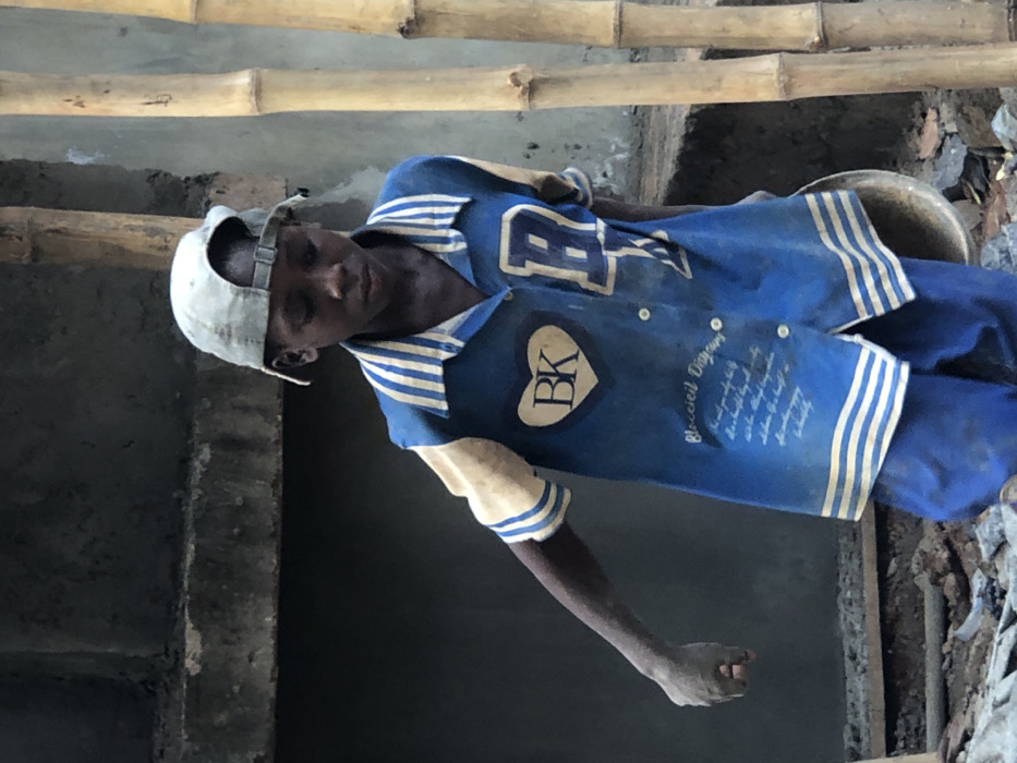 In Alor, Nigeria, a young male, presumably a boy, stands on an uneven, debris-strewn ground indicative of a construction site