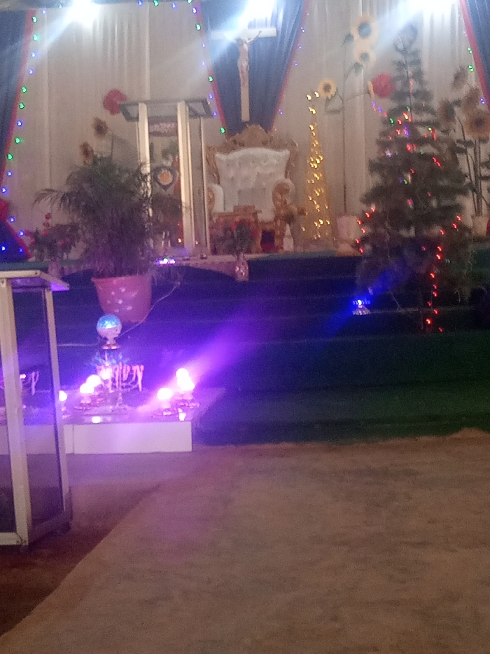 The image displays a decorated stage or altar area, likely indoors, at an Unknown location in an Unknown city