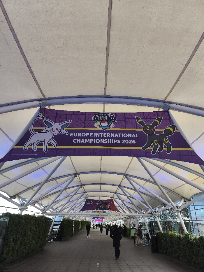 - "Under an arched, white structure, a purple banner promotes the Pokémon International Europe Championships 2026, featuring Espeon and Umbreon" by FM-t8ovw1, licensed under CC BY 4.0