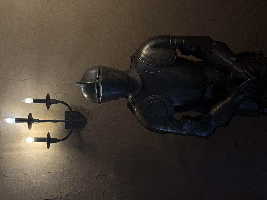 - "A full suit of dark, medieval-style plate armor stands upright against a textured, light brown wall" by FM-euyLP2, licensed under CC BY 4.0