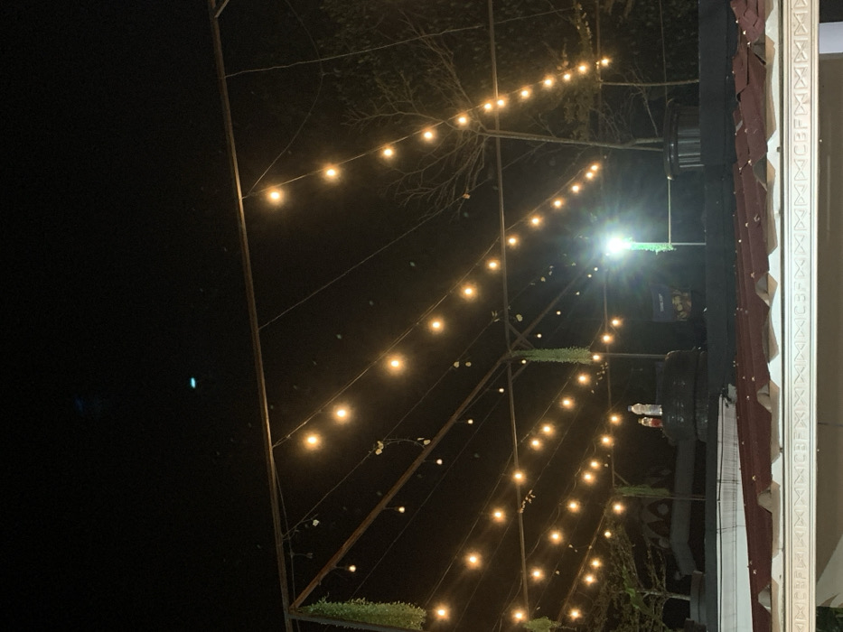 - "This is a nighttime photograph depicting an outdoor, string-lit patio or dining area, likely located in Cipanas, Indonesia" by FM-KUcUc2, licensed under CC BY 4.0