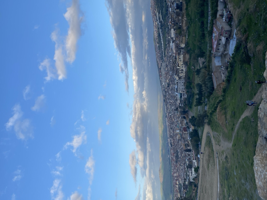 - "The image displays an elevated panoramic view of the city of Fez, Morocco, likely observed from the vantage point of the Marinid Tombs, located north of the historical medina" by FM-ZyJNa2, licensed under CC BY 4.0