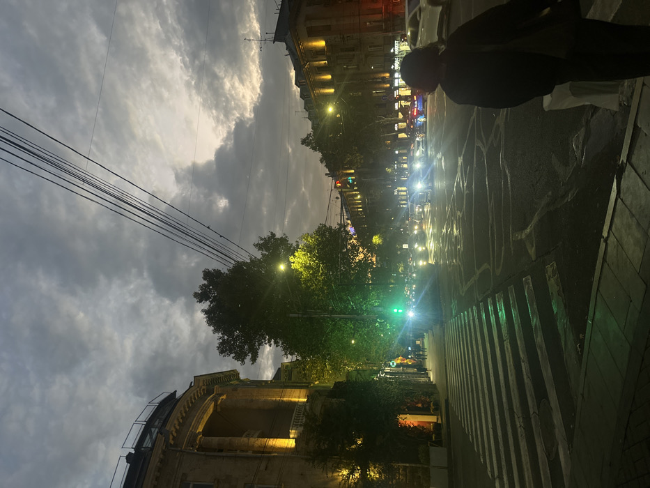 - "The image depicts an evening street scene on Mashtots Avenue in Yerevan, Armenia, near the Artists' Union of Armenia building, identifiable by its classical architecture and prominent illuminated columns on the left" by FM-uRDOs1, licensed under CC BY 4.0