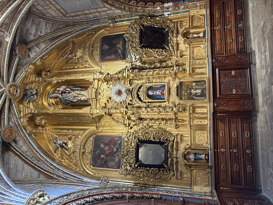 - "The image displays a highly ornate, multi-tiered golden altarpiece (retablo) within a sacristy or side chapel of the Cathedral of Santa María y San Julián de Cuenca, Spain" by FM-E1hwL2, licensed under CC BY 4.0