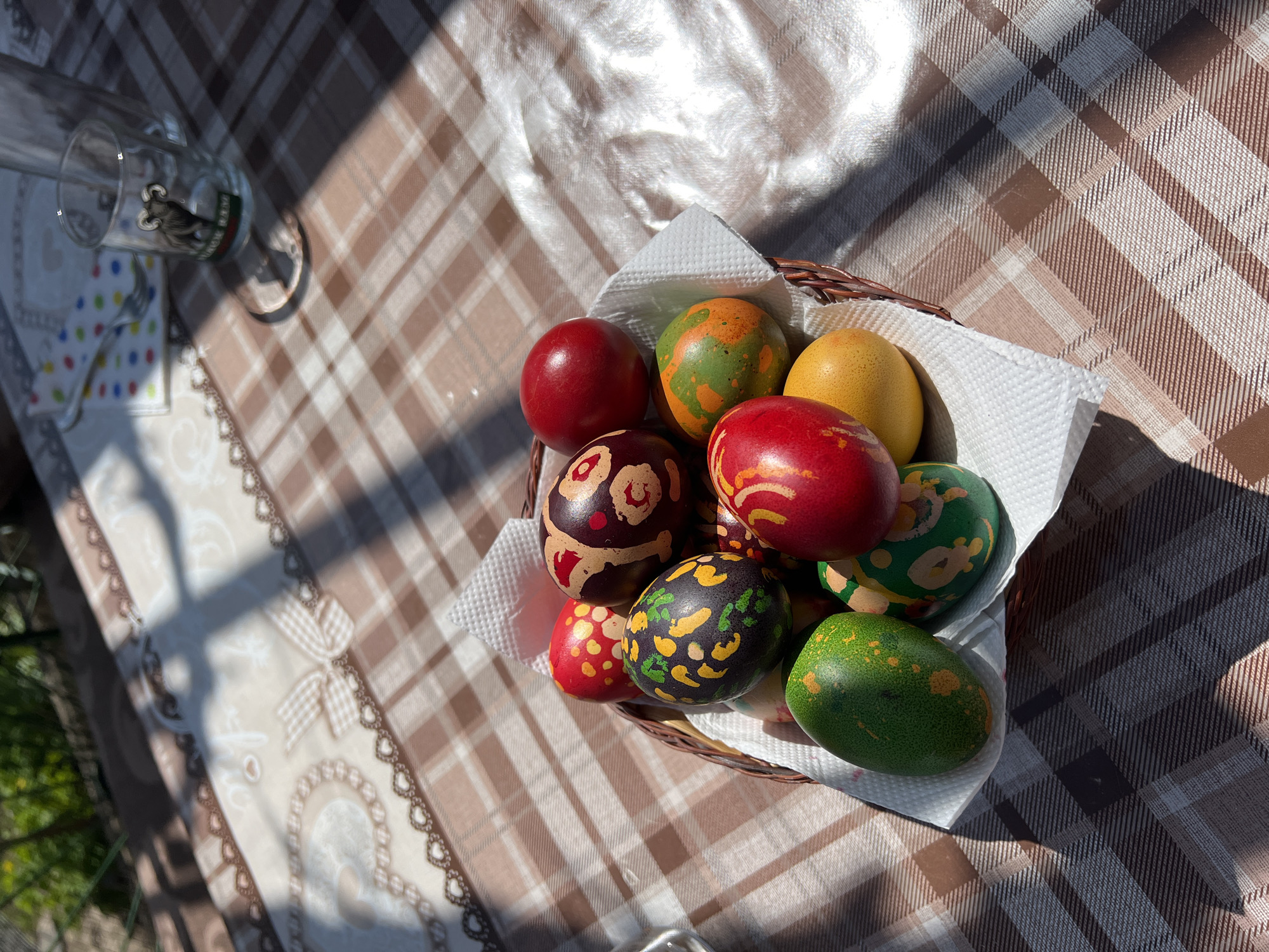 - "The image depicts a basket of decorated Easter eggs on a table covered with a checkered tablecloth" by FM-f117B3, licensed under CC BY 4.0