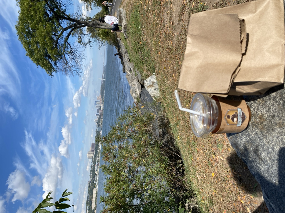 - "This image captures a bright, outdoor scene along the Hudson River, likely within Fort Washington Park or a similar waterfront area in Upper Manhattan, New York City, looking west-northwest towards New Jersey" by FM-F9FdG3, licensed under CC BY 4.0