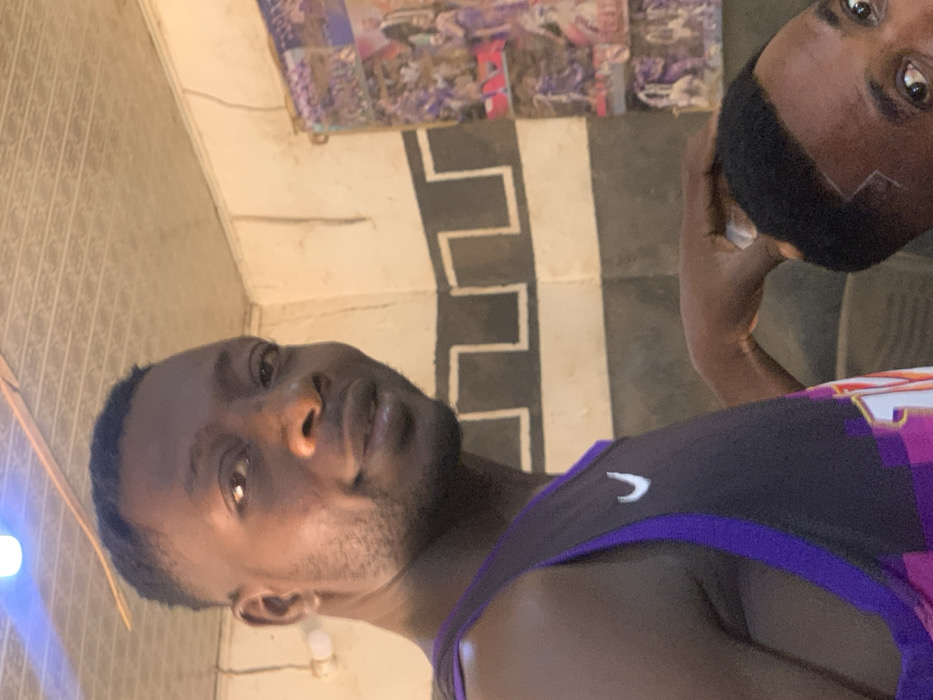 The image depicts an indoor scene, consistent with a barbershop, located in Garaku, Nigeria