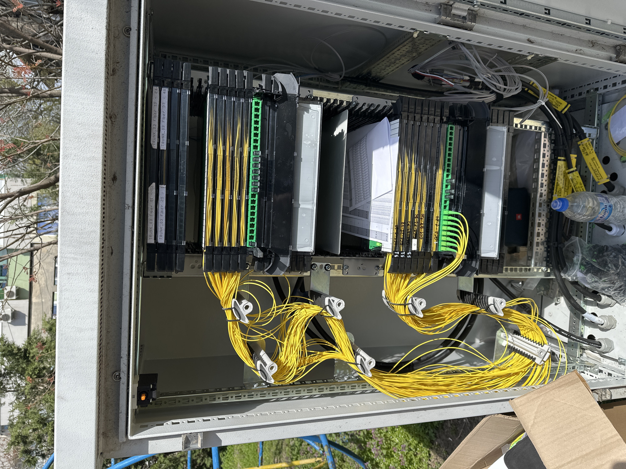 - "The image depicts an open telecommunications cabinet containing fiber optic cables, likely in Ruse, Bulgaria" by FM-ikzVo1, licensed under CC BY 4.0