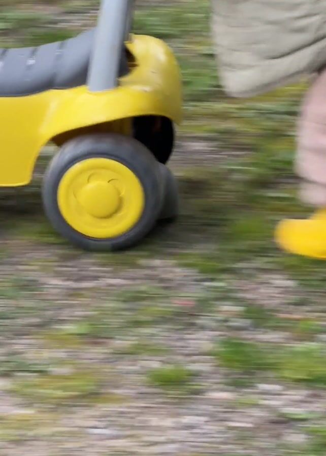 - "toddler pushing a yellow ride-on toy on a gravel and grassy surface" by FM-fbqYv1, licensed under CC BY 4.0