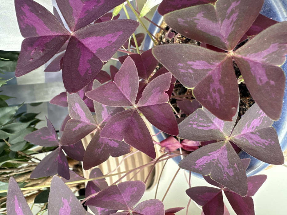 - "The image displays a close-up of an Oxalis triangularis plant, commonly known as a Purple Shamrock" by FM-cOgJG3, licensed under CC BY 4.0