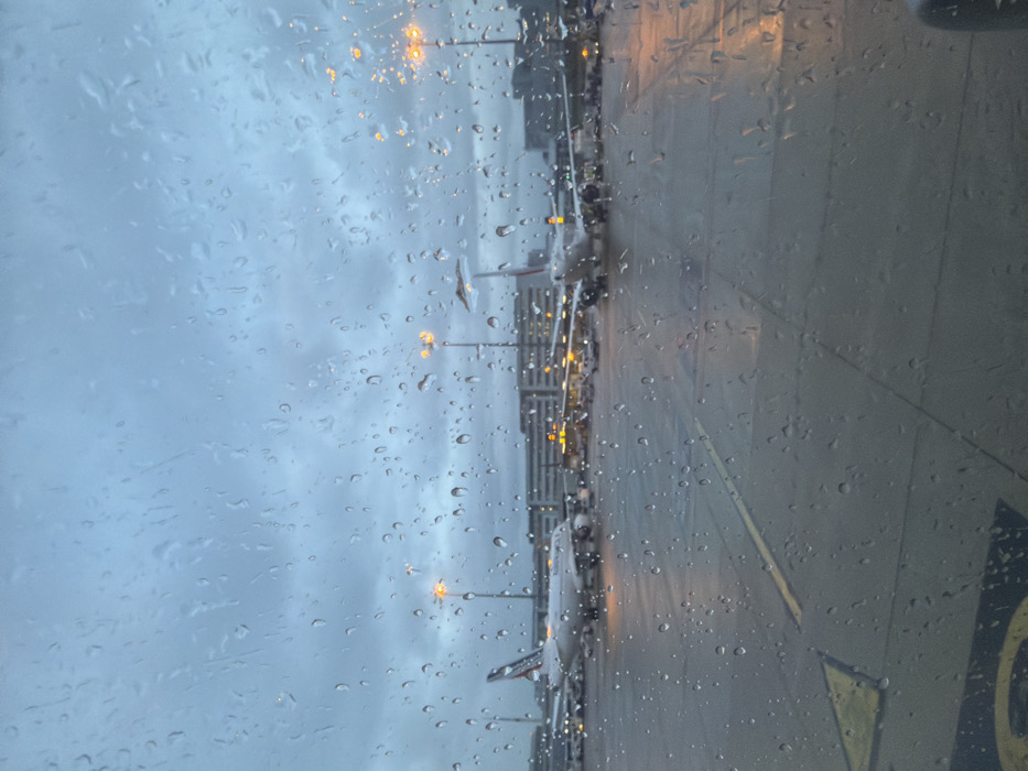 - "Raindrops streak a window, blurring the view of an airport tarmac" by FM-N1L8J2, licensed under CC BY 4.0