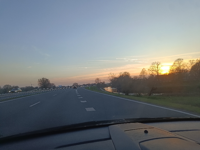 - "The image depicts a forward-facing view from inside a vehicle on a multi-lane highway in Rheden, Netherlands, during either sunrise or sunset" by FM-quo0I2, licensed under CC BY 4.0
