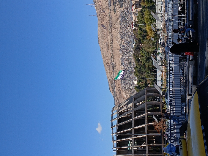 - "The image depicts an outdoor urban scene in Al-Qanawat Municipality, Damascus, Syria, under a clear blue sky with a single small white cloud" by FM-JsuIA2, licensed under CC BY 4.0