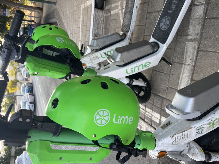 - "The image depicts three Lime electric scooters parked on a paved sidewalk in Petah Tikva, Israel" by FM-EBxyC2, licensed under CC BY 4.0