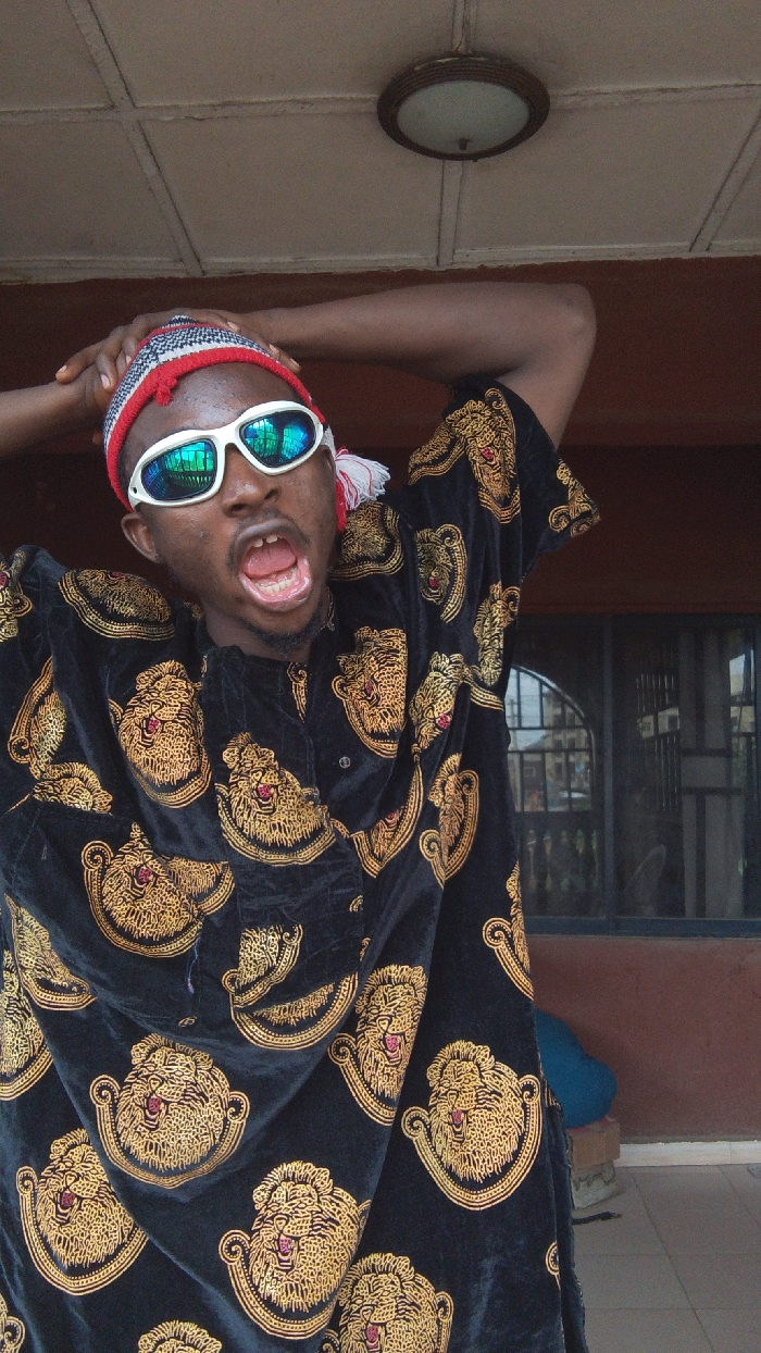 A dark-skinned male is depicted in a covered outdoor or semi-outdoor location within Onitsha, Nigeria