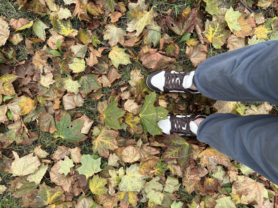 - "A top-down forensic photographic view captures the lower extremities of an individual standing on a ground covered extensively with autumn leaves in Saint Petersburg, Russia" by FM-9WZ5h1, licensed under CC BY 4.0