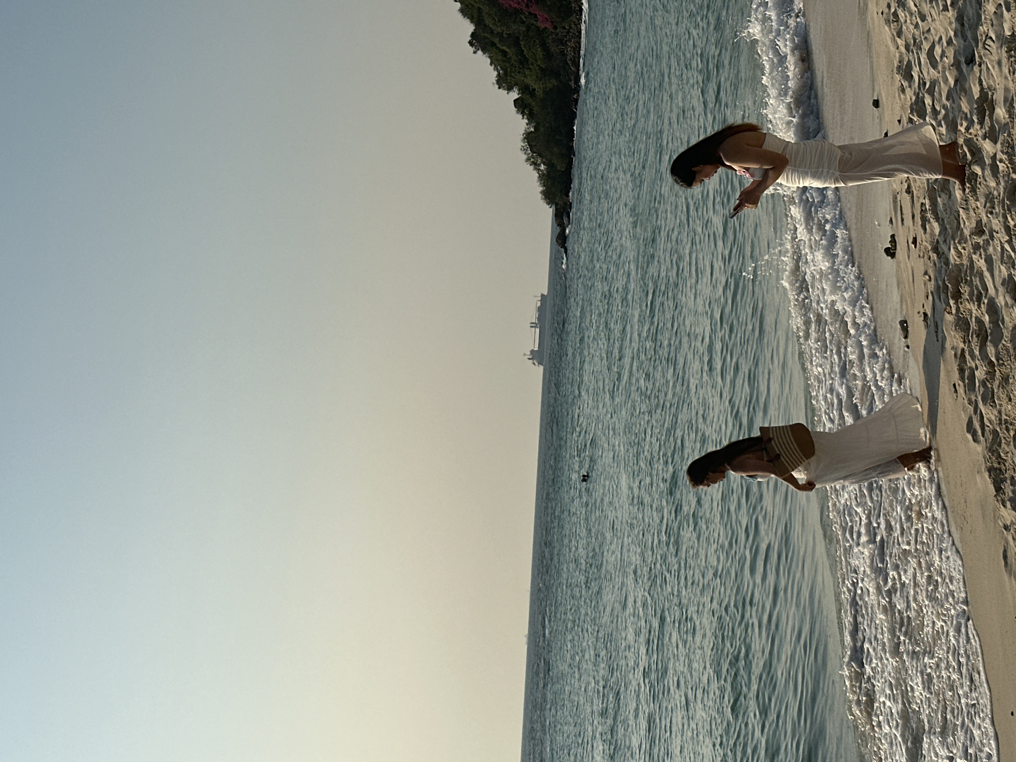 - "Two women in white dresses stand on a sandy beach beside a body of water" by FM-2t2Dl2, licensed under CC BY 4.0