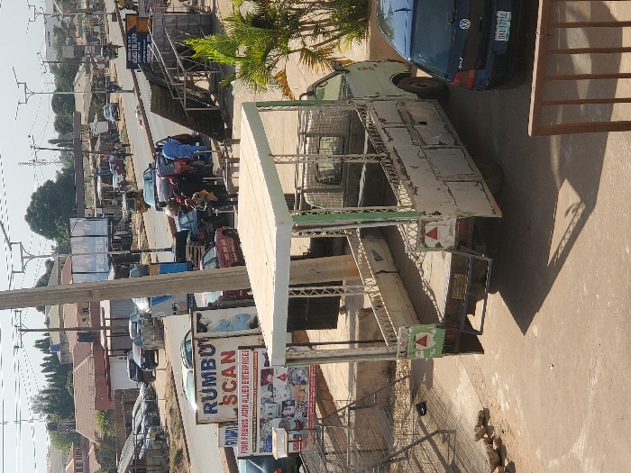 The image presents an urban street scene in Sabon Tasha, Nigeria, captured during daylight hours