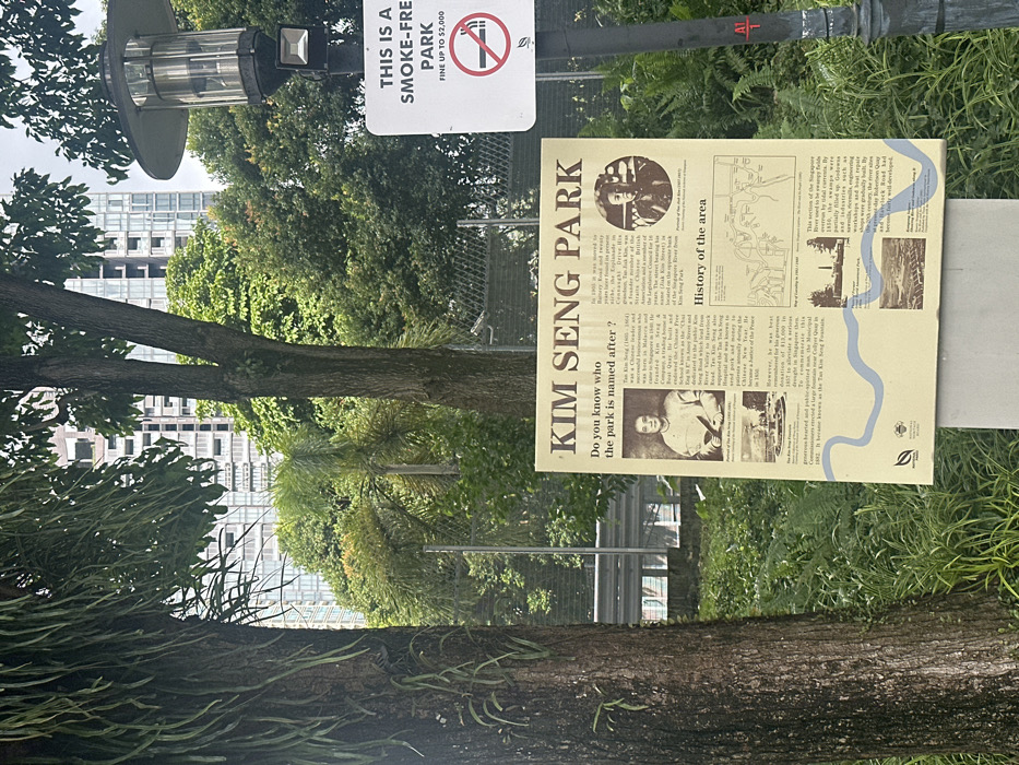 The image depicts an information panel for Kim Seng Park, located in Singapore