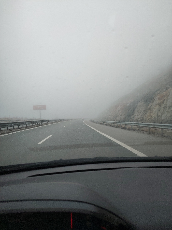 - "The image depicts a foggy highway scene in Yablanitsa, Bulgaria, viewed from inside a vehicle looking forward through a wet windshield" by FM-9GZaD3, licensed under CC BY 4.0