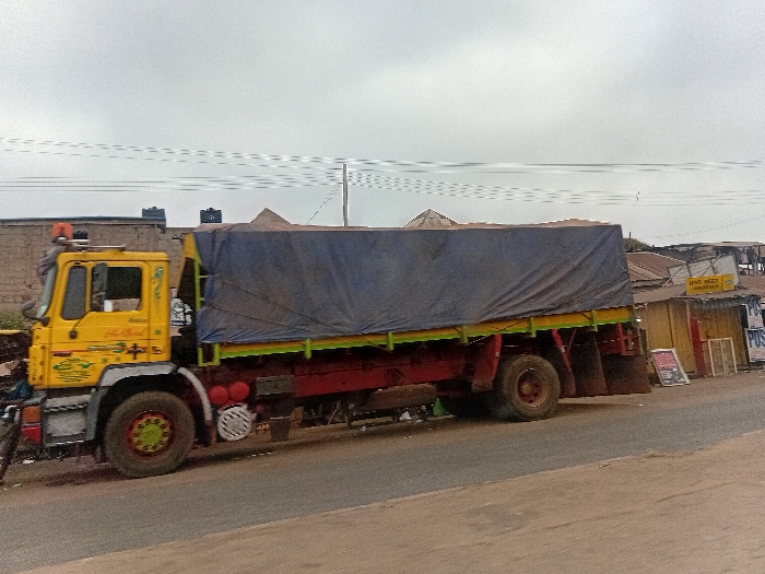 - "The scene depicts a stationary, heavy-duty flatbed truck parked on the paved shoulder of a road in Itobe, Nigeria, under an overcast sky" by FM-dBOlu2, licensed under CC BY 4.0