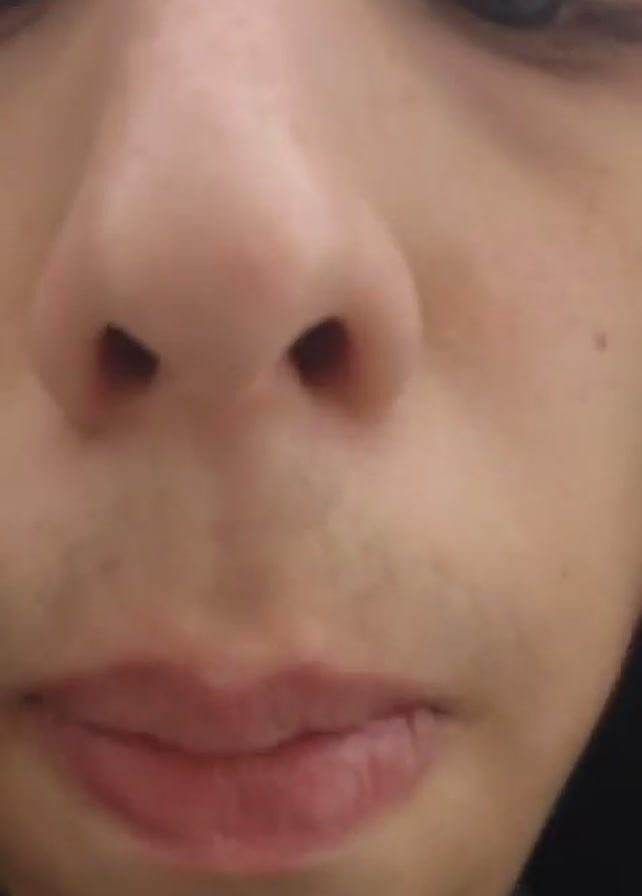 A young man wearing a black hooded jacket stands outdoors. The camera focuses on his face, particularly his mouth and nose. He is speaking. A road and a tree are visible in the background. The sky is overcast.