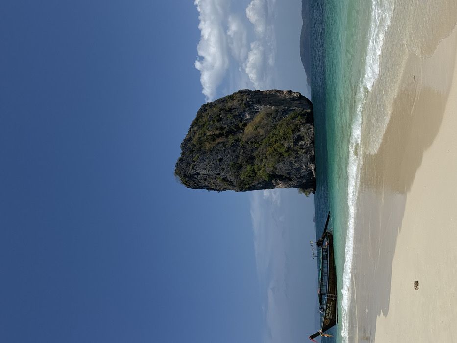 - "The scene depicts a coastal landscape in Ban Ao Nang, Thailand, under a clear blue sky with scattered white cumulus clouds on the right" by FM-M5A4l2, licensed under CC BY 4.0