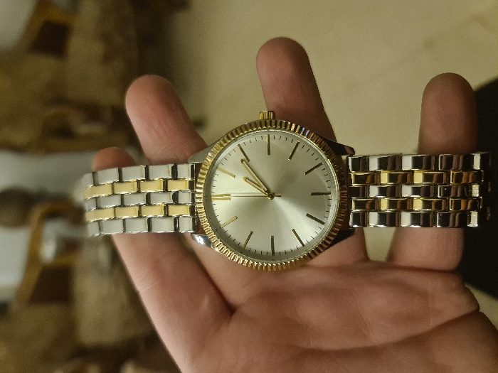- "A two-tone watch with a gold and silver metal band rests in the palm of a hand" by FM-gCwqi1, licensed under CC BY 4.0