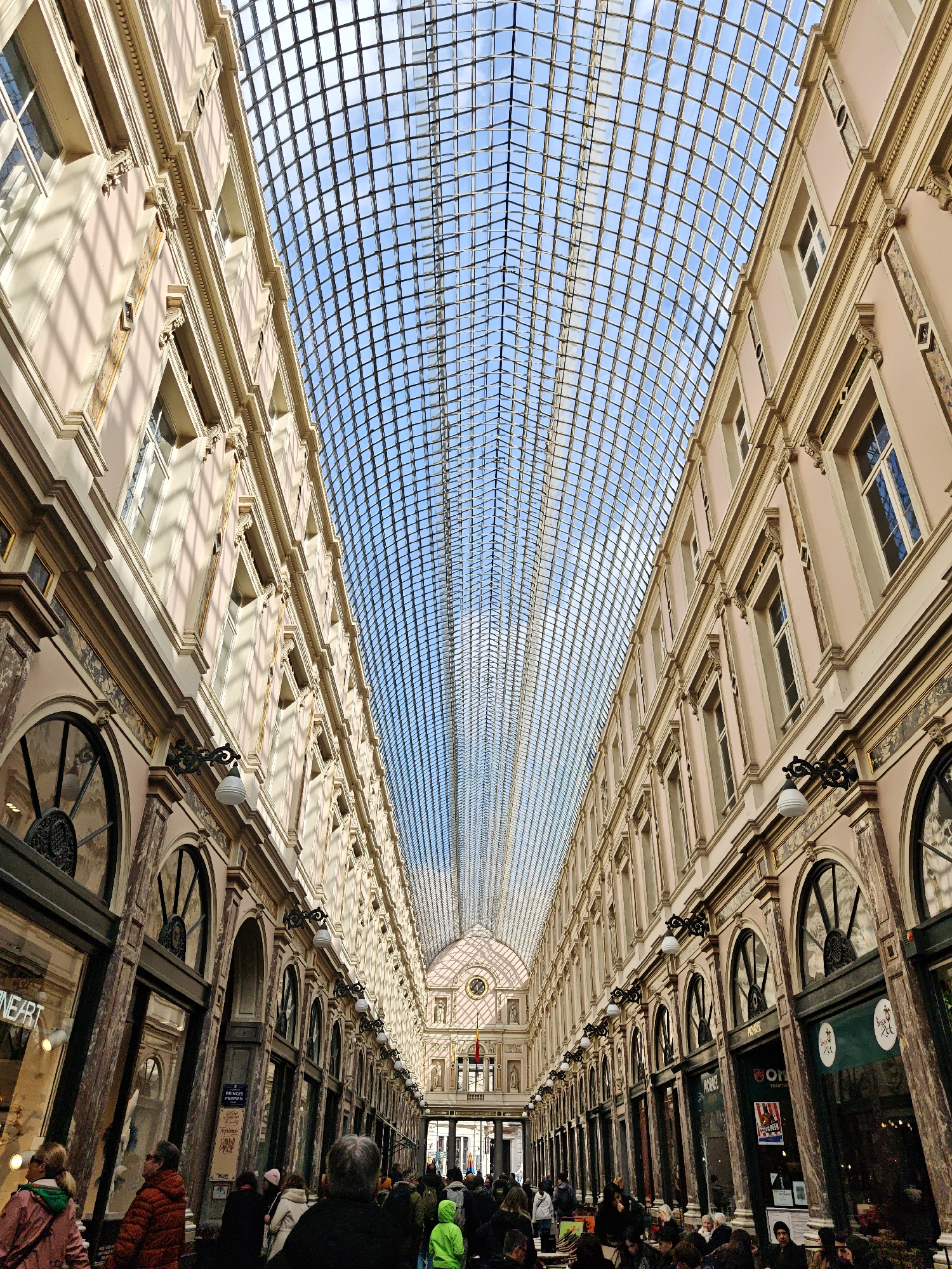 The image depicts the Galerie Royale Saint-Hubert in Brussels, Belgium