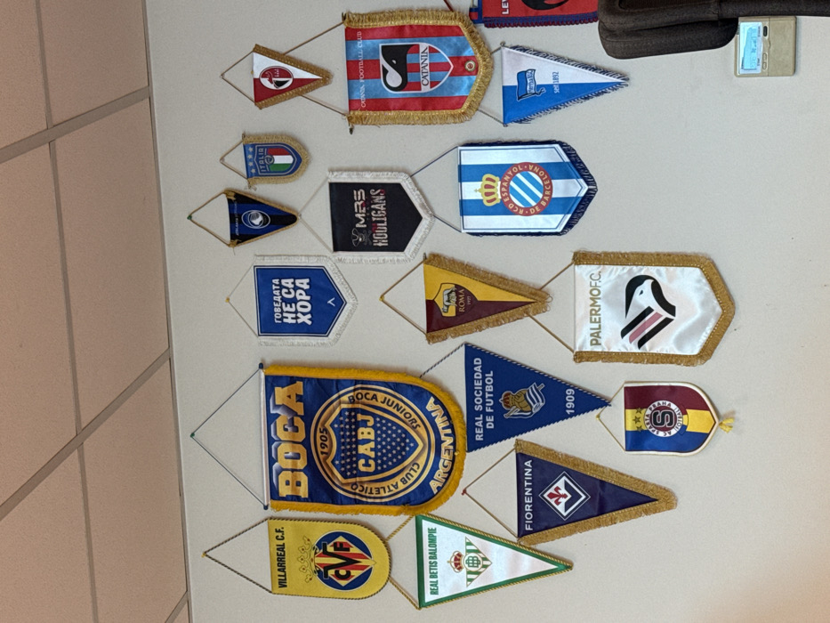 - "The image displays an interior wall in Sofia, Bulgaria, adorned with approximately 19 diverse football club pennants and banners" by FM-svxfj2, licensed under CC BY 4.0