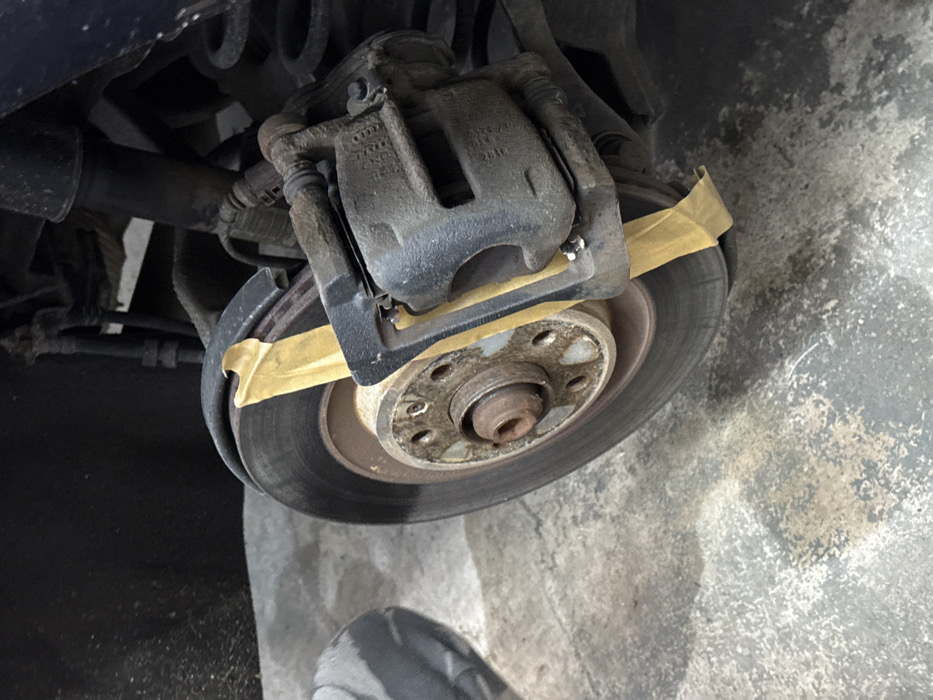 - "The image displays a vehicle's exposed rear brake assembly within an indoor garage or workshop setting in Rosen, Bulgaria" by FM-4jdnw2, licensed under CC BY 4.0