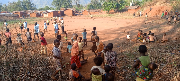- "This image captures an outdoor scene in Konongo, Democratic Republic of the Congo, featuring approximately 40-50 individuals, predominantly children, dispersed across an unpaved, reddish-brown dirt common" by FM-Di9s03, licensed under CC BY 4.0