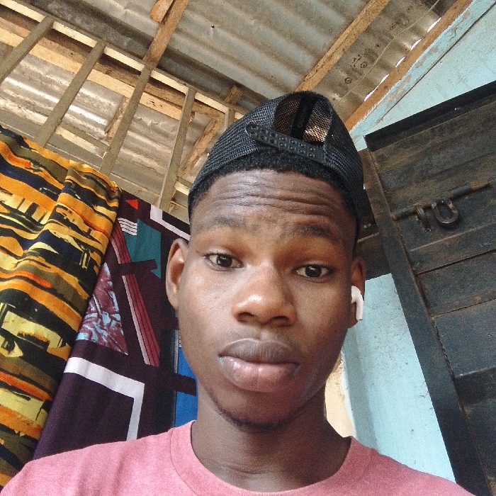 A young, dark-skinned man with short hair and a black baseball cap faces the camera