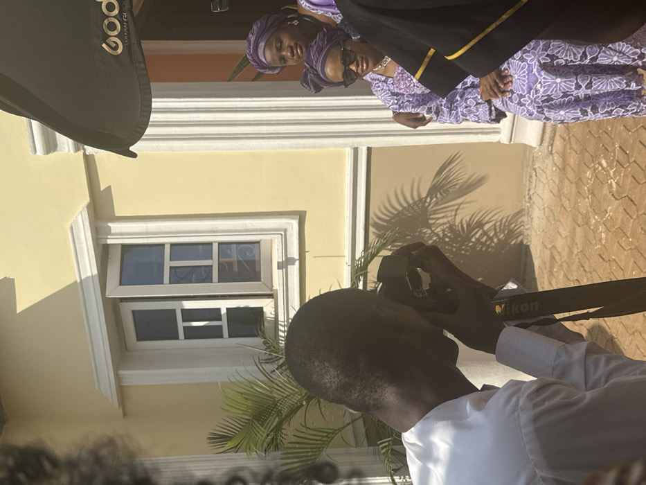 An outdoor photoshoot is underway at a residential building in Hayin Banki, Nigeria