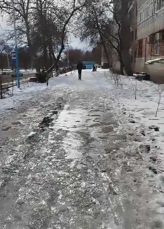 sidewalk covered in ice and snow
