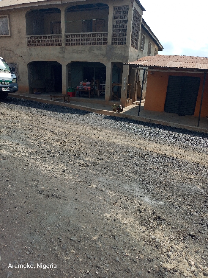 street in Ilobu, Nigeria, at coordinates 7