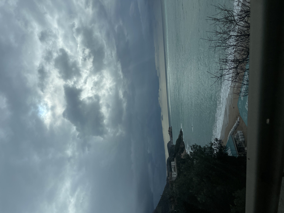 - "The image captures a coastal landscape in Kamenovo, Montenegro, under an overcast sky dominated by heavy grey clouds, with localized sunbeams breaking through to illuminate portions of the distant sea" by FM-UjYe32, licensed under CC BY 4.0