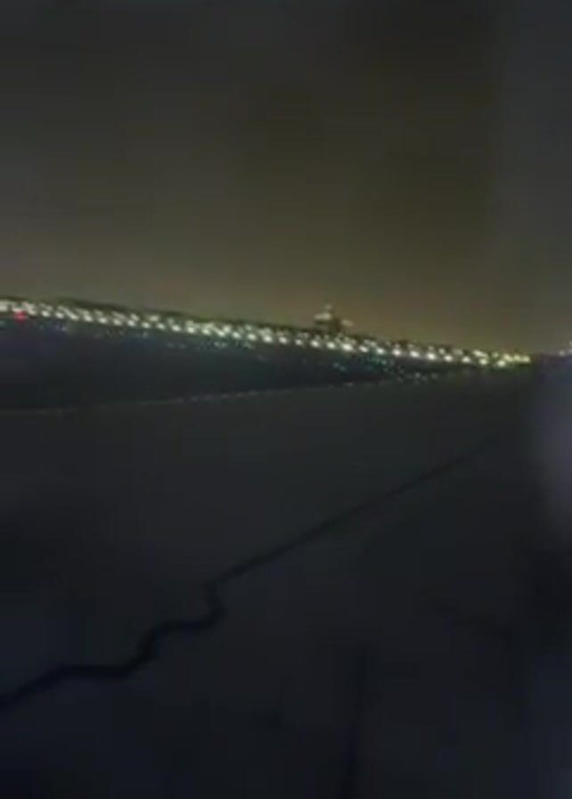 n airplane landing at night