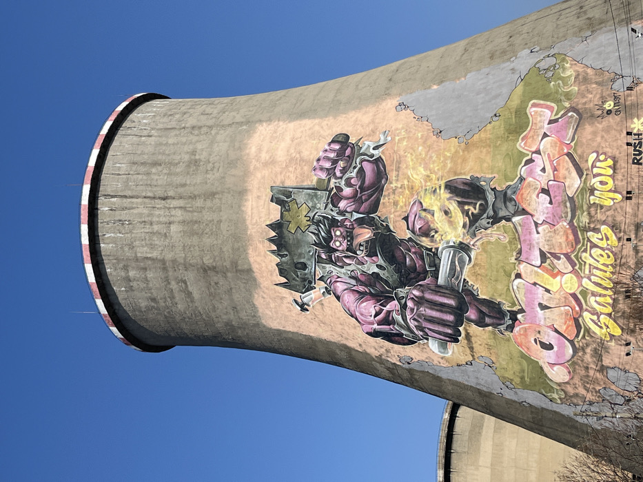 - "A large, grey concrete cooling tower, tapering upwards, stands under a clear blue sky" by FM-lpmjW2, licensed under CC BY 4.0