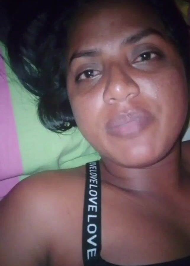 A dark-skinned person with black hair is lying down, looking at the camera and speaking. The person is wearing a black tank top with "LOVE" written on the straps. The background appears to be a striped pillow or cushion with green and pink stripes. The lighting is dim, and the focus is on the person's face.