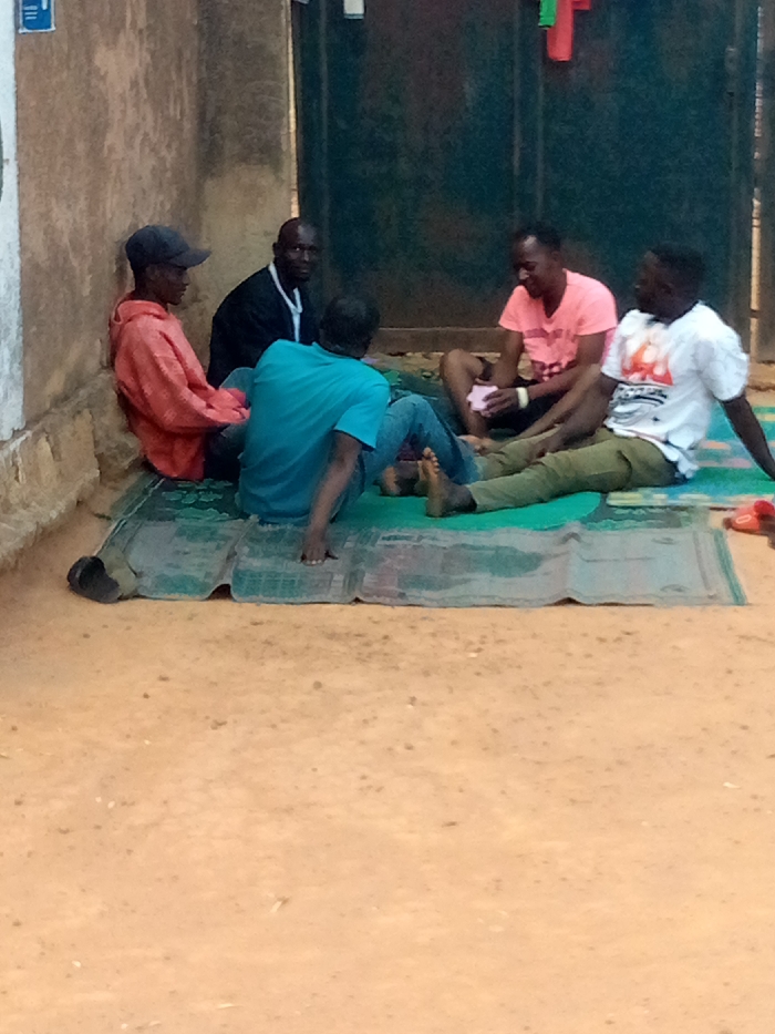 - "Five men sit on a thin, patterned mat in front of a building" by FM-5cKsm1, licensed under CC BY 4.0